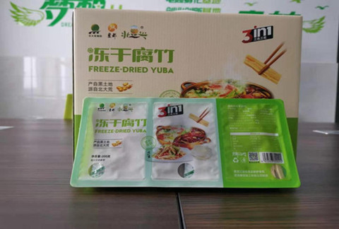 含量高:蛋白質(zhì)含量比烘干腐竹高15%、脂肪含量比烘干腐竹高 8%。先進(jìn)的真空凍干技術(shù),取代傳統(tǒng)的高溫烘干腐竹工藝,低溫工藝保障腐竹自身的大豆蛋白不變性、不破壞、不流失。