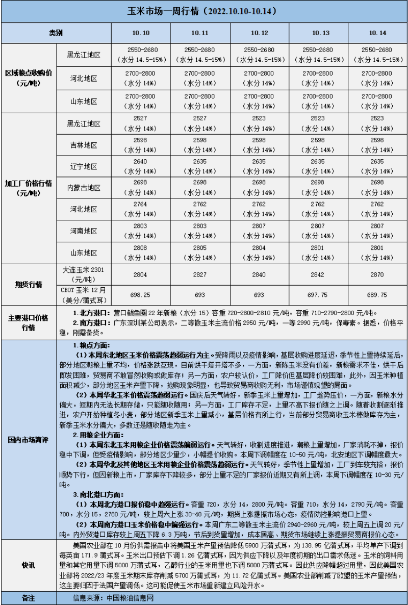 天然橡膠、大豆、玉米市場(chǎng)一周行情(2022.10.10-10.14)