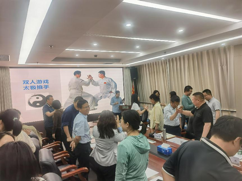 張旸以“親密關(guān)系構(gòu)建與壓力管理”為核心,結(jié)合親密關(guān)系、家庭溝通、壓力管理等典型場景,通過案例講解與互動問答,揭示了和諧人際關(guān)系、高效溝通和壓力紓解等方面的內(nèi)在邏輯。建議從理解差異、調(diào)整認(rèn)知、切換關(guān)系等方面推進(jìn)家庭關(guān)系和諧以及工作效能提升。授課過程中,參會人員開展了“雙人拍手”、“雙人太極推手”等游戲,與教授互動交流,現(xiàn)場氛圍熱烈。參會職工普遍反映,講座兼具理論深度與生活溫度,為破解“工作家庭兩難”提供了可操作的解決方案。