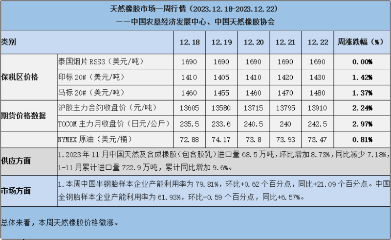 天然橡膠、大豆、玉米市場(chǎng)一周行情(2023.12.18-12.22)