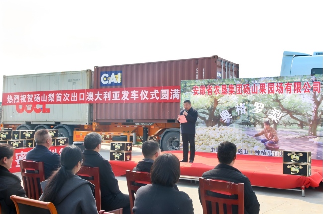 “這是繼去年碭山梨成功出口泰國后的又一次重要突破。”安徽省農(nóng)墾集團(tuán)市場總監(jiān)齊廣鵬在當(dāng)日上午舉行的碭山梨出口澳大利亞啟運(yùn)儀式上表示,碭山梨成功登陸澳大利亞,充分證明安徽農(nóng)墾農(nóng)產(chǎn)品品質(zhì)已達(dá)到國際一流標(biāo)準(zhǔn),更為皖墾特色農(nóng)產(chǎn)品規(guī)模化、標(biāo)準(zhǔn)化出海樹立了新標(biāo)桿。