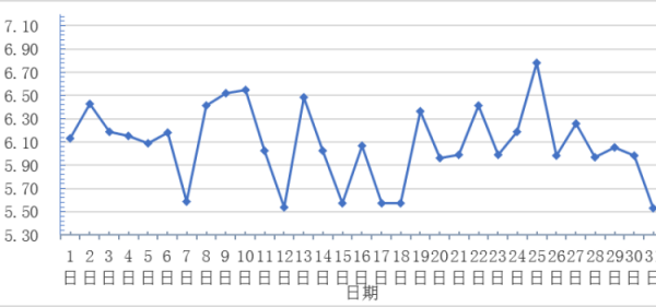 12月,全國(guó)重點(diǎn)監(jiān)測(cè)農(nóng)產(chǎn)品批發(fā)市場(chǎng)香蕉總交易量達(dá)2.4萬(wàn)噸,同比下降14.3%,環(huán)比基本持平;總交易價(jià)值13441.7萬(wàn)元,同比下降20.3%,環(huán)比下降7.0%。日平均價(jià)格最高為6.8元/千克,最低為5.5元/千克,全月平均價(jià)格為6.1元/千克,同比上漲5.2%,環(huán)比下降4.7%(每日價(jià)格變化如圖)。