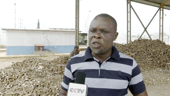 木薯粉加工廠廠長曹仁忠:我們使用中國先進的種植技術(shù)和理念,在7000多公頃的土地上種植了不同品種的木薯,這樣確保每個時間段都有木薯成熟,從而滿足當?shù)孛癖妼Z食的需求。
