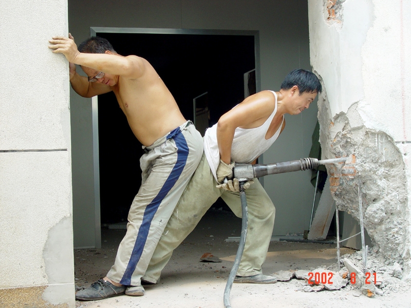 2002年公司組織員工自己動(dòng)手拆除舊廠(chǎng)房