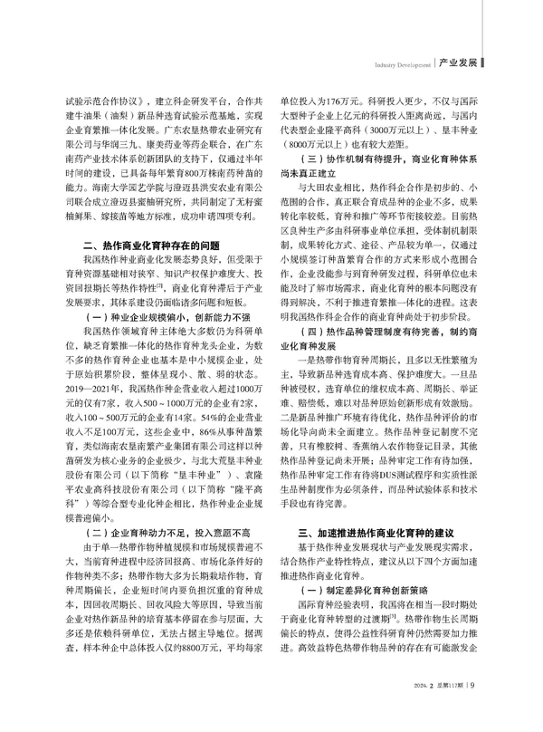 我國(guó)熱作商業(yè)化育種現(xiàn)狀、問題及對(duì)策研究